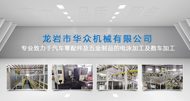About us龍巖市華眾機械有限公司成立于2010年12月,新廠位于福建省龍巖市新羅區東寶工業集中區,注冊資本3000萬元,占地27000平方米,員工60多人,是一家專業從事電泳、磷化、數車等加工業務的制造型企業,是國家高新技術企業,擁有三十多項實用新型專利。 我司的電泳技術和品質在華南地區深受客戶信賴。公司擁有20年以上經驗豐富的技術人員和管理人員,擁有全自動電泳生產設備,所采用原料均為美國、德國進口,產品品質能達到國際電泳涂裝標準要求,廣泛應用于汽車零部件、機械配件、電子產品、工藝品等一系列金屬制品。現配套服務于比亞迪、吉利、通用、福特、大眾、豐田、現代等全球知名汽車公司。 2018年8月公司通過NSF-ISR管理評審,獲得IATF16949質量管理體系證書。